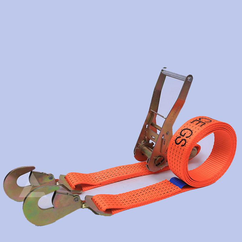 在物流園上班的工人們,需要用棘輪貨物捆綁帶先把貨車上的貨物進行捆綁固定,不然圓形貨物或者不規則的重物在長途運行中容易出現掉落的現象。先用貨物捆綁帶的吊鉤鉤住車的一側,然后把貨物進行捆綁,在車的另一側把拴緊器固定住,把織帶從拉緊器的底部穿過去,然后再把織帶從中間孔傳過來拉緊,拉緊器收緊捆綁工作完成。拉緊器廠家撼馬生產不同長度的捆綁帶,使用在各個行業中。